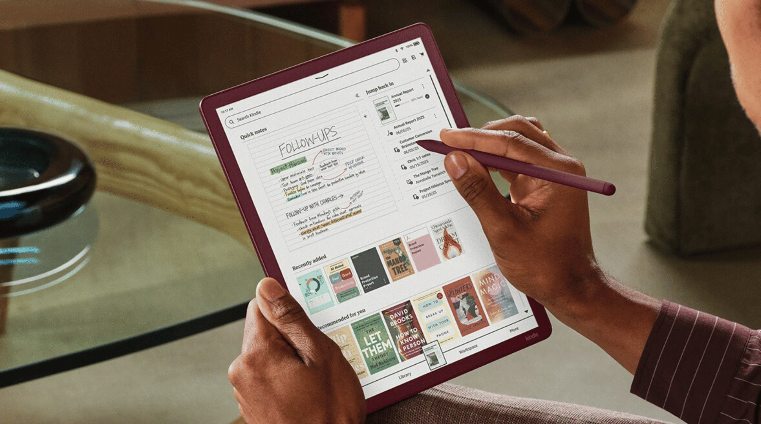 Her iki modelde de bulunan yeni “Home” arayüzü, kullanıcılara son açılan kitaplara, belgelerine ve not defterlerine hızlı erişim sağlıyor. Amazon, bu modellerin özellikle el yazısı notlar için yoğun şekilde kullanılacağını öngörüyor. Bu kapsamda notlar arasında arama yapma ve temel yapay zekâ özetleri alma gibi özellikler eklenmiş durumda. 2026’da ise kullanıcıların notlarını Alexa+ üzerinden analiz edebileceği daha gelişmiş bir entegrasyonun geleceği belirtiliyor.
